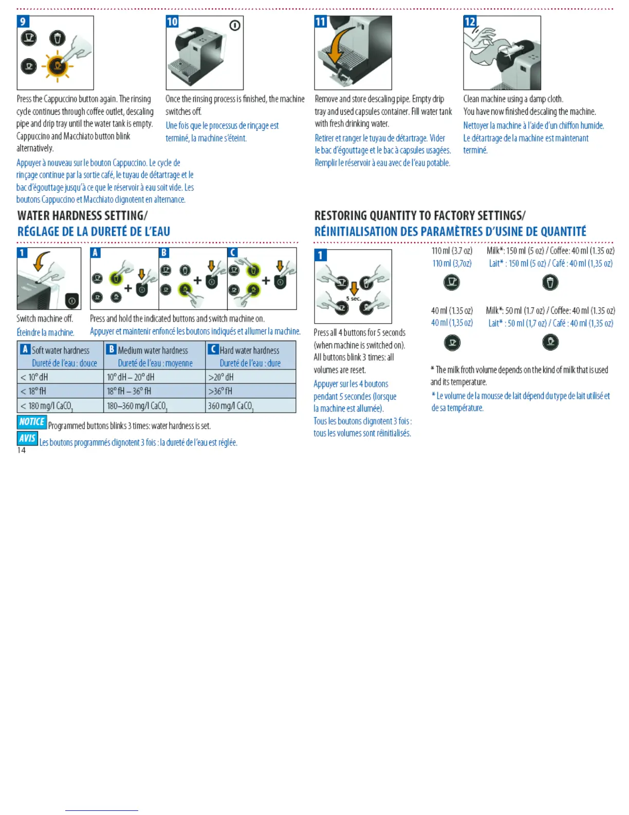 DeLonghi EN520BL - Settings and Customization; Water Hardness Setting; Restoring Factory Settings
