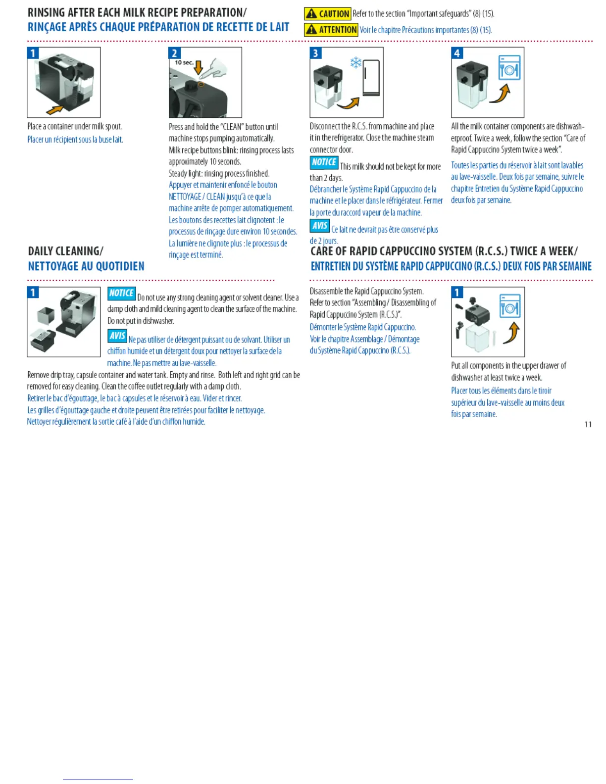 DeLonghi EN520BL - Cleaning and Maintenance; Rinsing After Milk Recipe; Daily Cleaning; Rapid Cappuccino System Care (Twice Weekly)