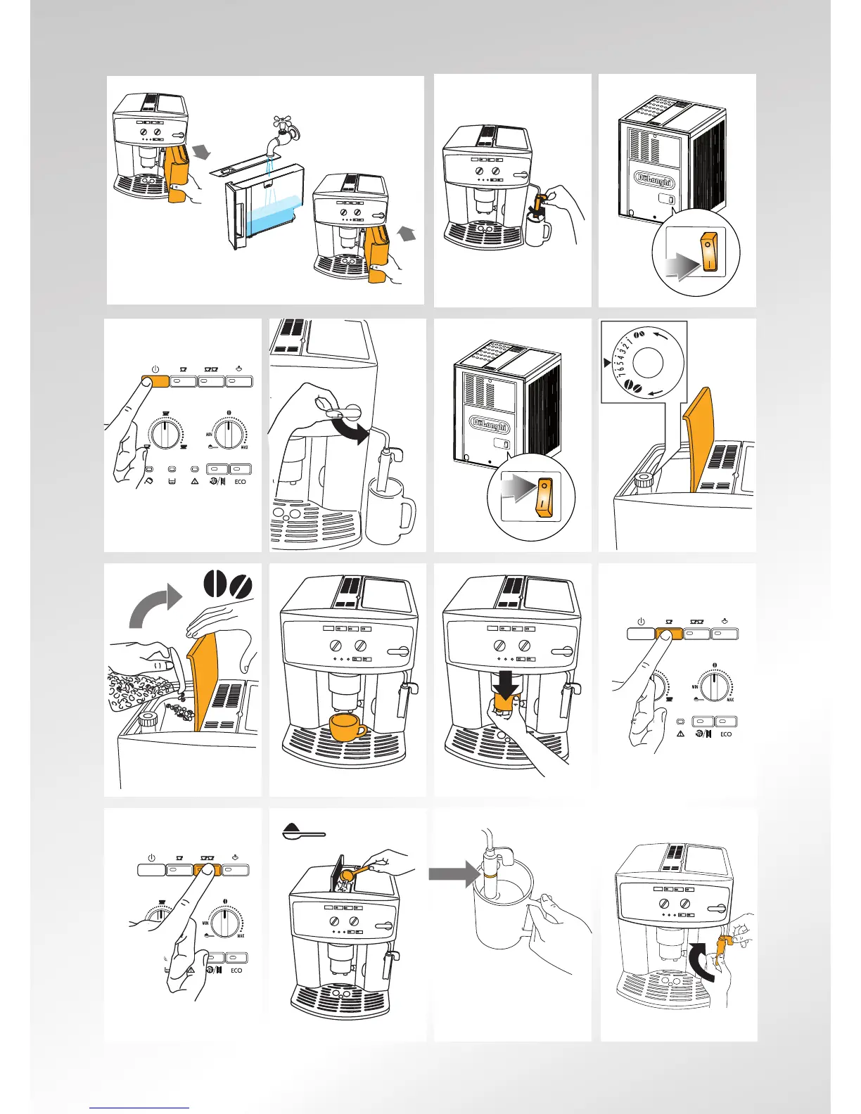DeLonghi ESAM2800 - Visual Guide to Operation; Step-by-Step Usage Illustrations