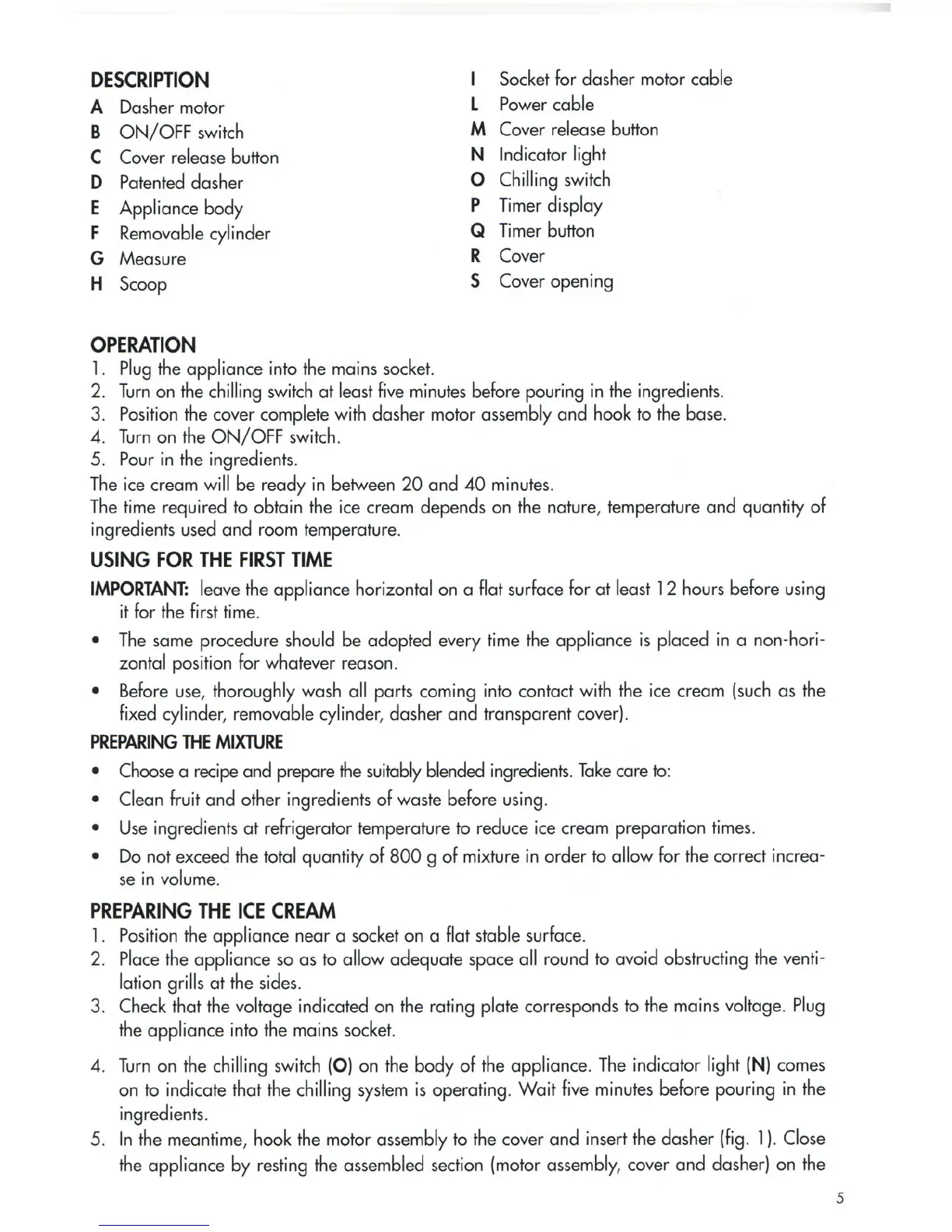 DeLonghi ICK8500 - Operating the Ice Cream Maker; Initial Setup and First Use