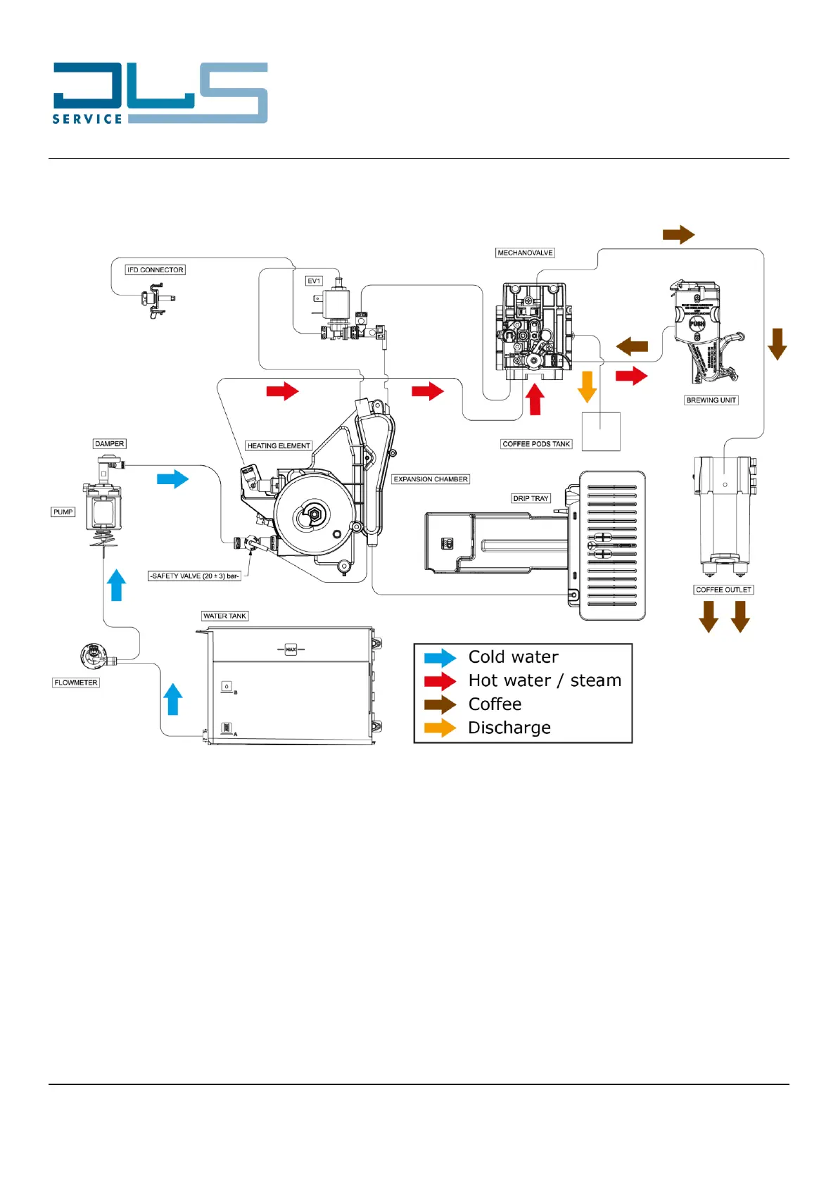 8. The Mechanical Valve discharges the excess of water/coffee to the grounds container