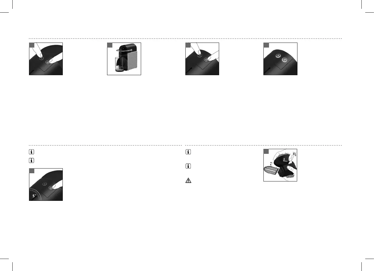 Fabrikkinnstillinger: espressokopp: 40 ml, lungokopp: 110 ml, automatisk avstenging: 9 min.