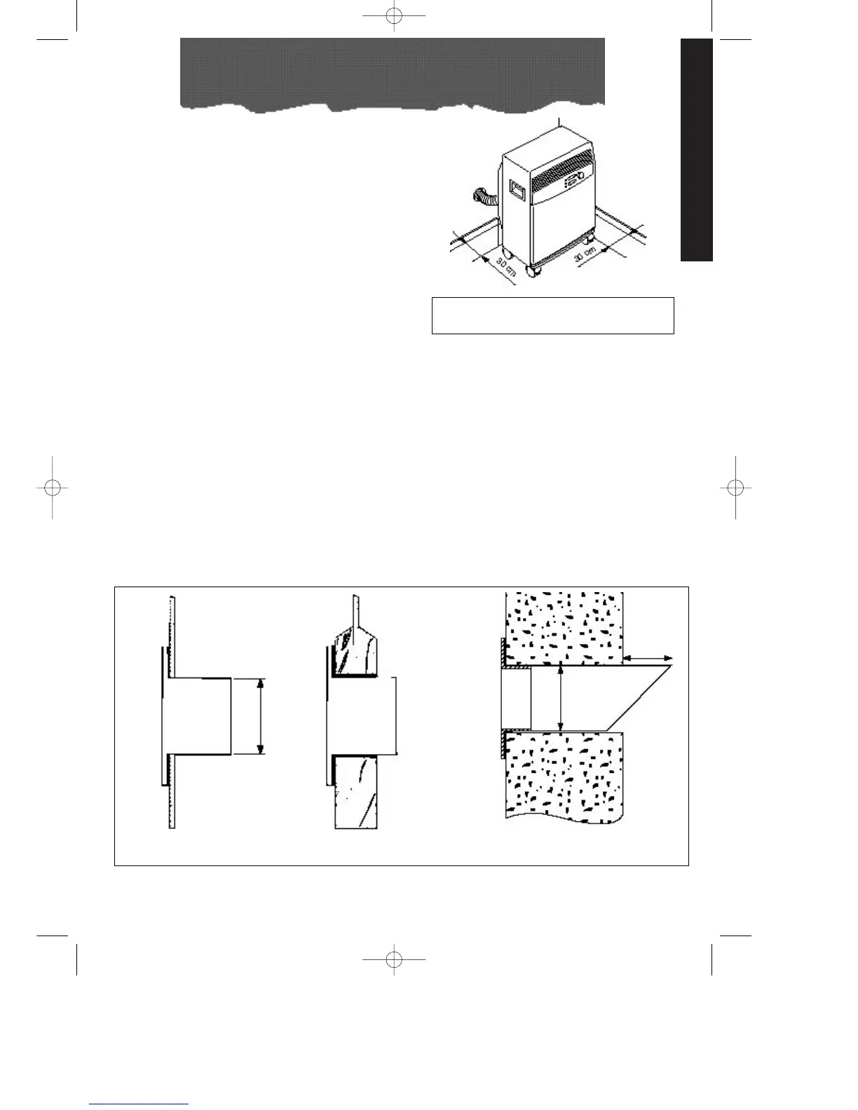 30 cm. from the surrounding walls.