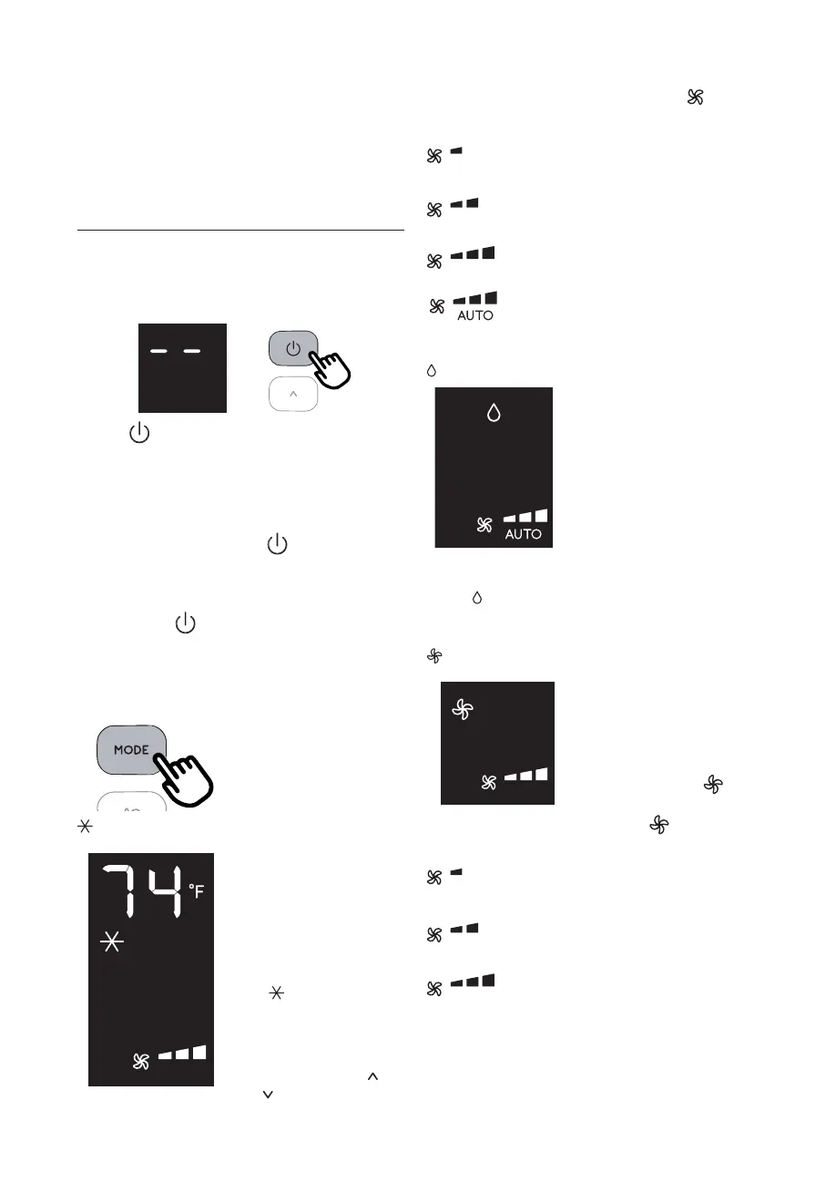 • Touch repeatedly the MODE key (C2) until the dehumidify-