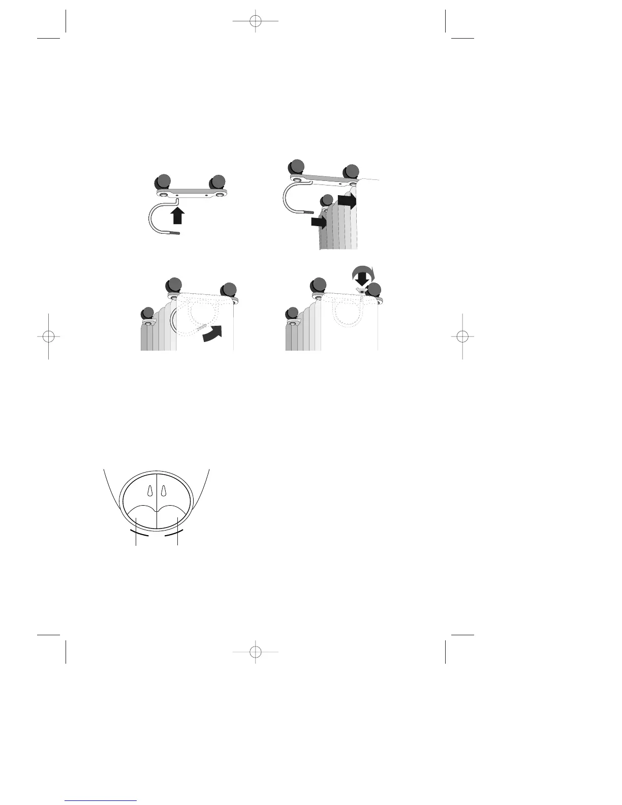 The feet with the casters must be fitted with two arc-shaped brackets only between the 1st