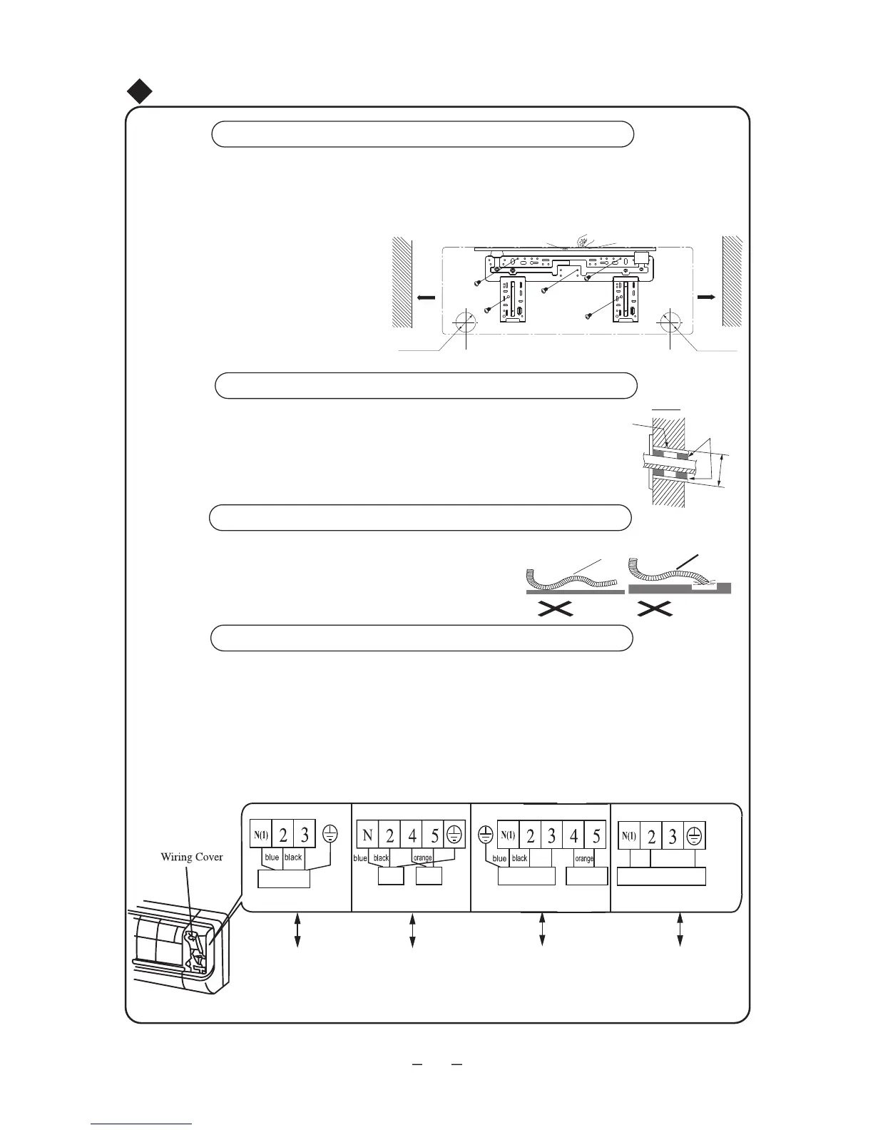 1.Always mount the rear panel horizontally. Due to the water tray of indoor unit has been adopted the