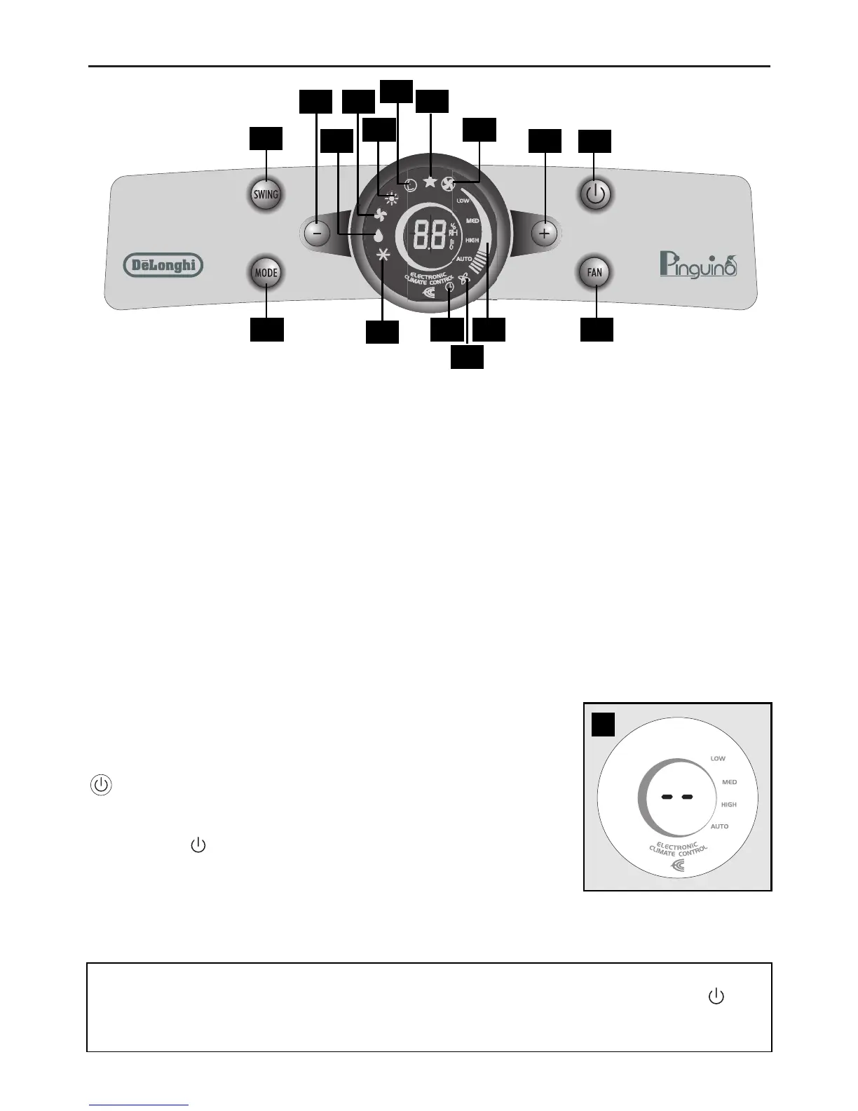 8 Fan speed button: Low - Med - High -