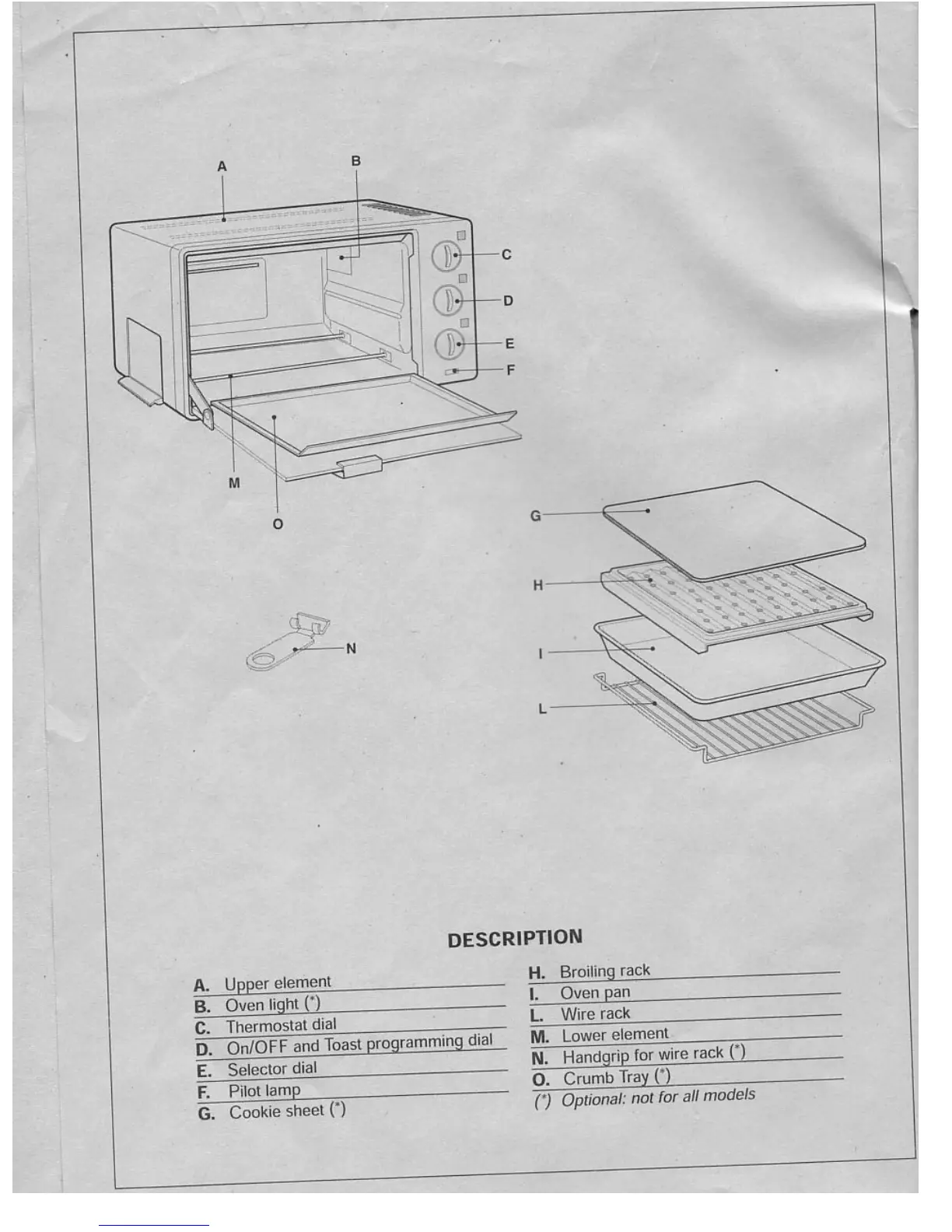 DeLonghi XR640 - Toaster Oven Component Overview; Key Appliance Components; Included Cooking Accessories