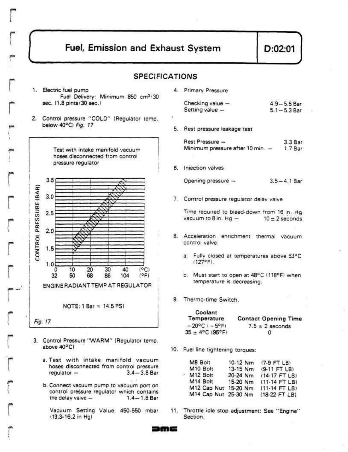 Fuel line tightening torques: