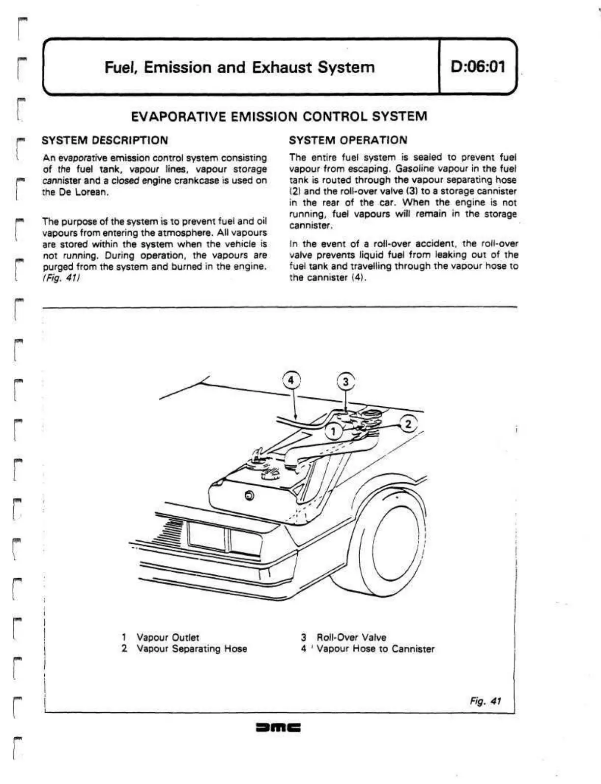 of the fuel tank, vapour lines, vapour storage