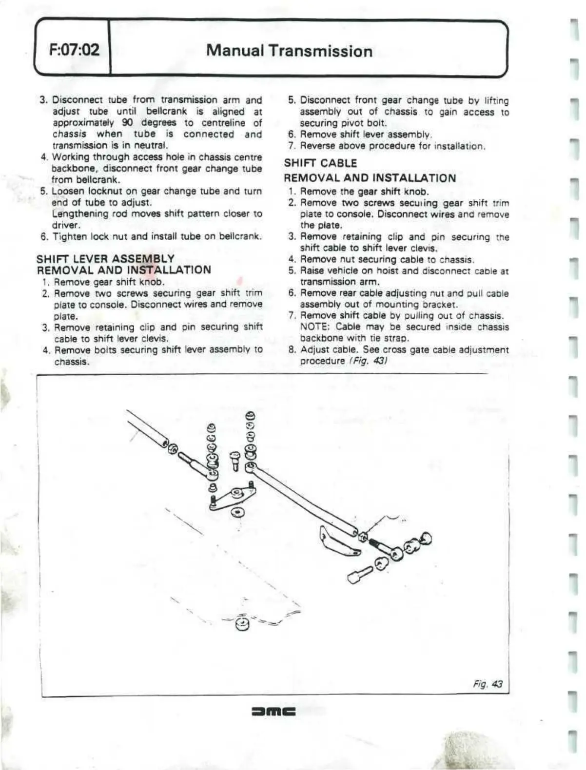 8. Adjust cable. See cross gate cable adjustment