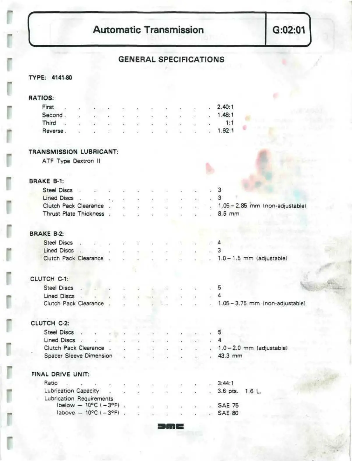 Clutch Pack Clearance 1.05-3.75 mm (non-adjustable)