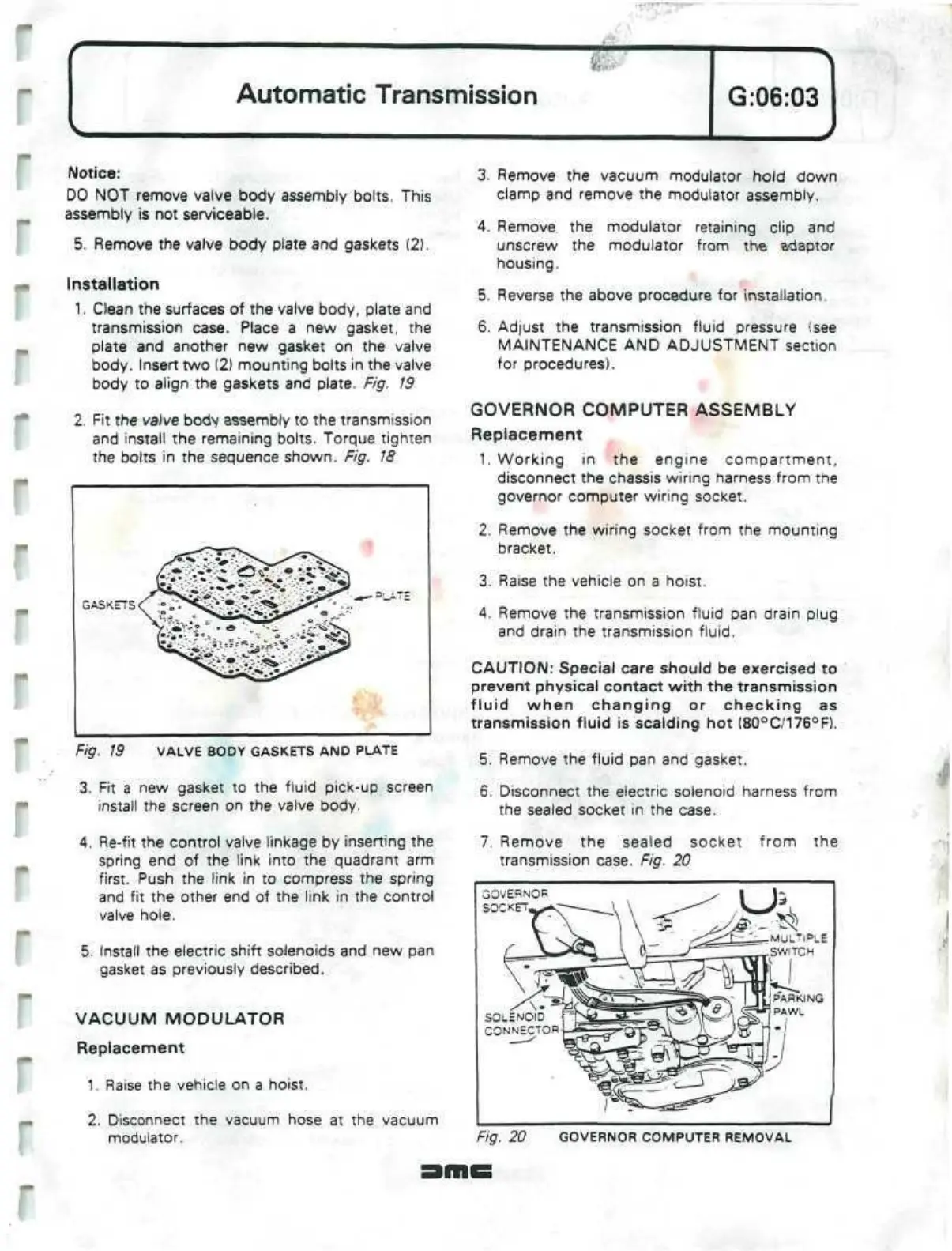 Fig. 19 VALVE BODY GASKETS AND PLATE