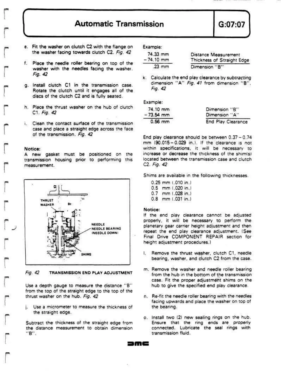 Fig. 42 TRANSMISSION END PLAY ADJUSTMENT