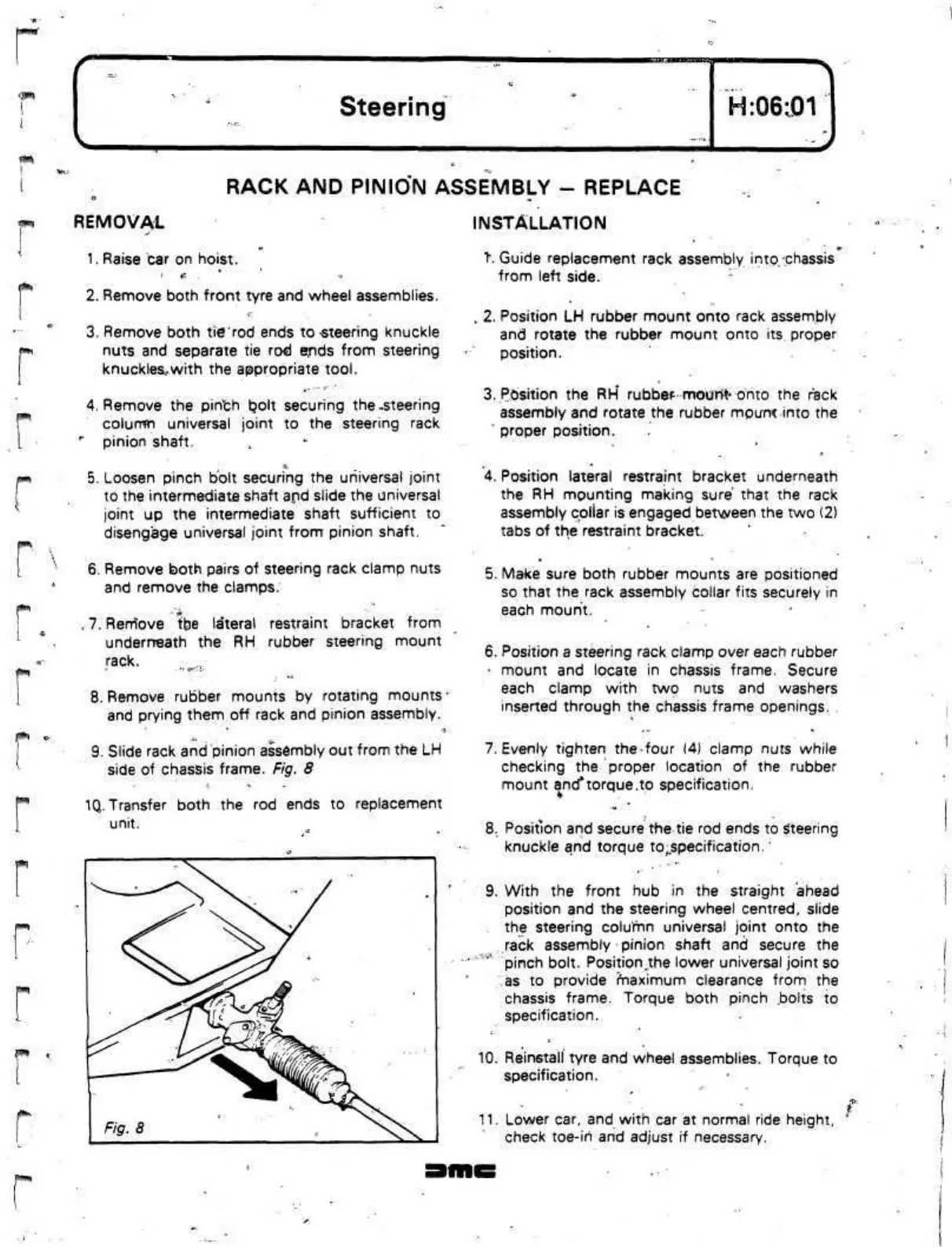 9. Slide rack and pinion assembly out from the LH