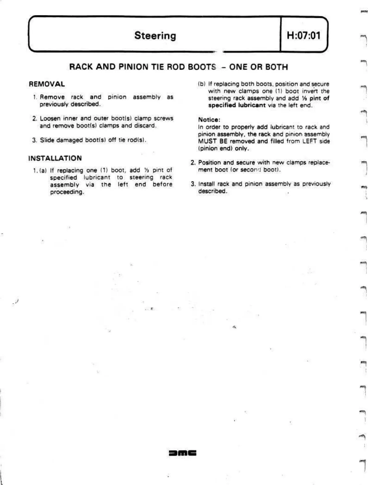 steering rack assembly and add Vi pint of