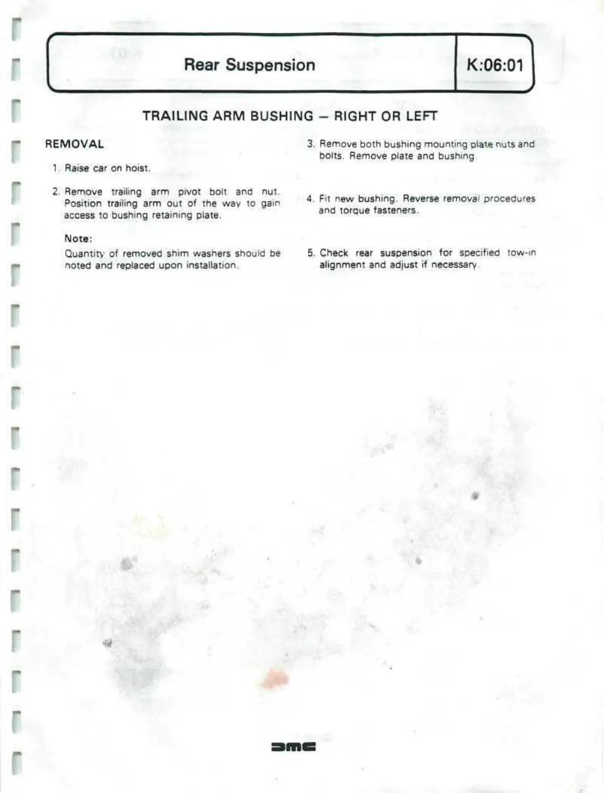 Remove trailing arm pivot bolt and nut.