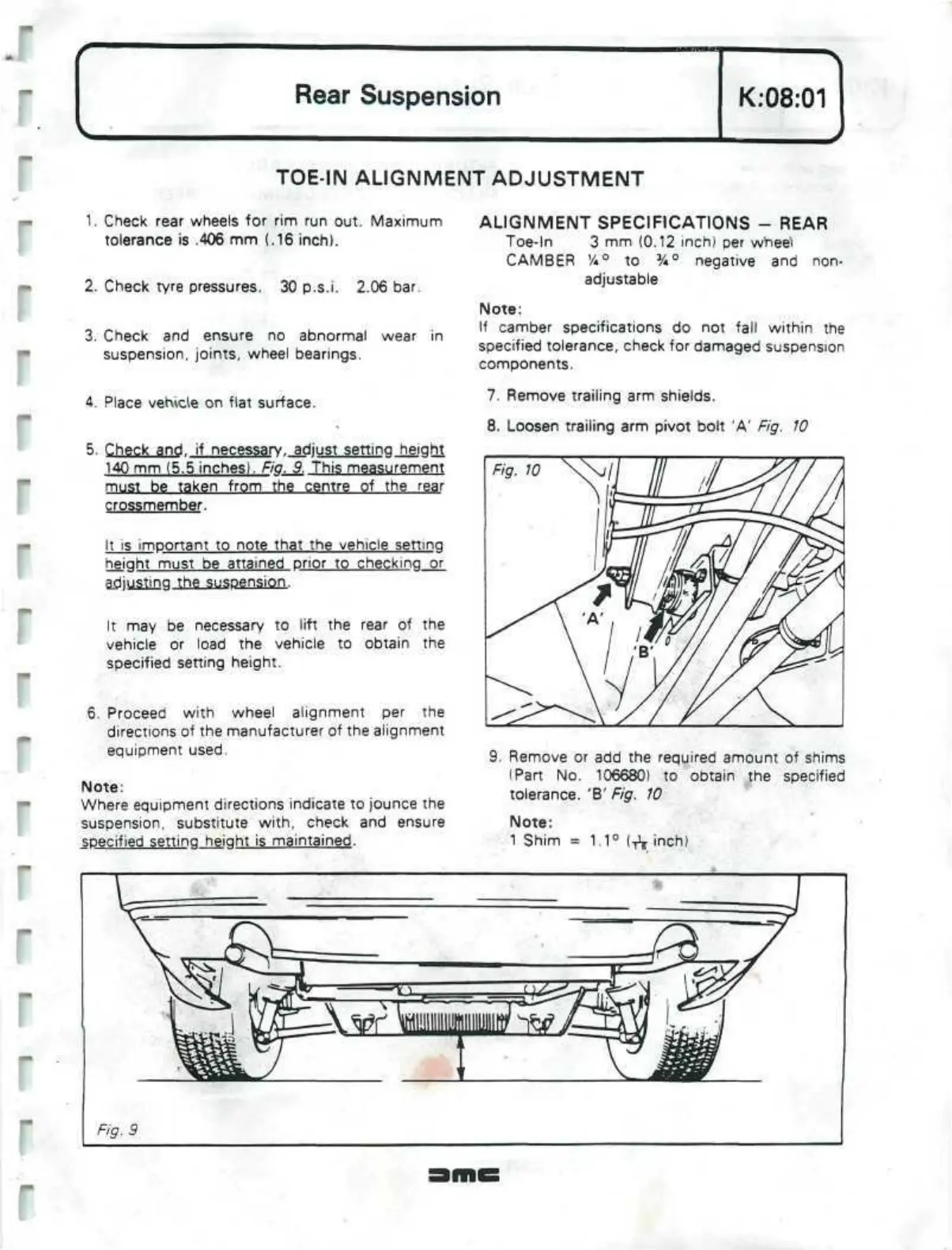 ALIGNMENT SPECIFICATIONS - REAR