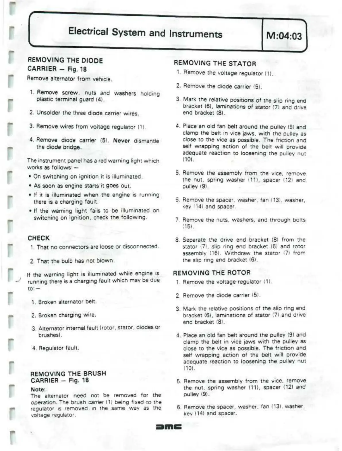 Remove diode carrier (5). Never dismantle