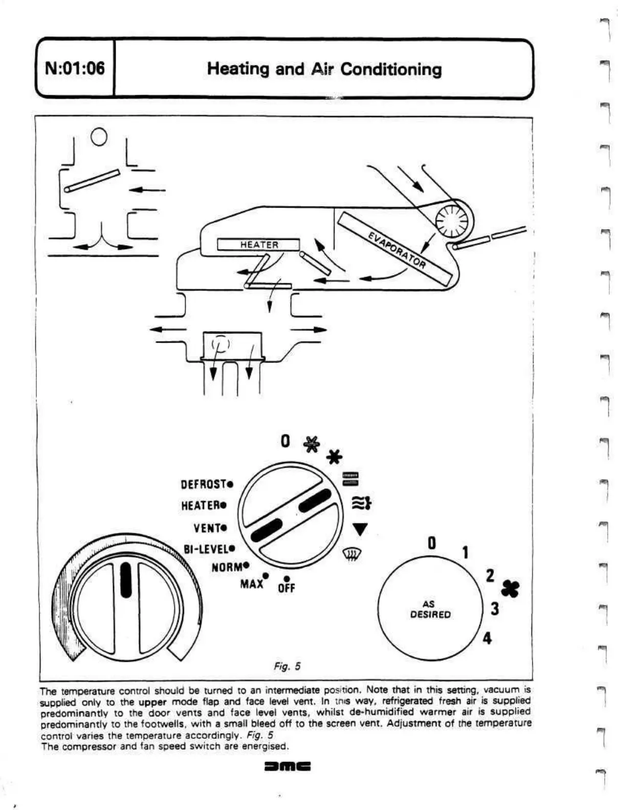 predominantly to the footwells, with a small bleed off to the screen vent. Adjustment of the temperature