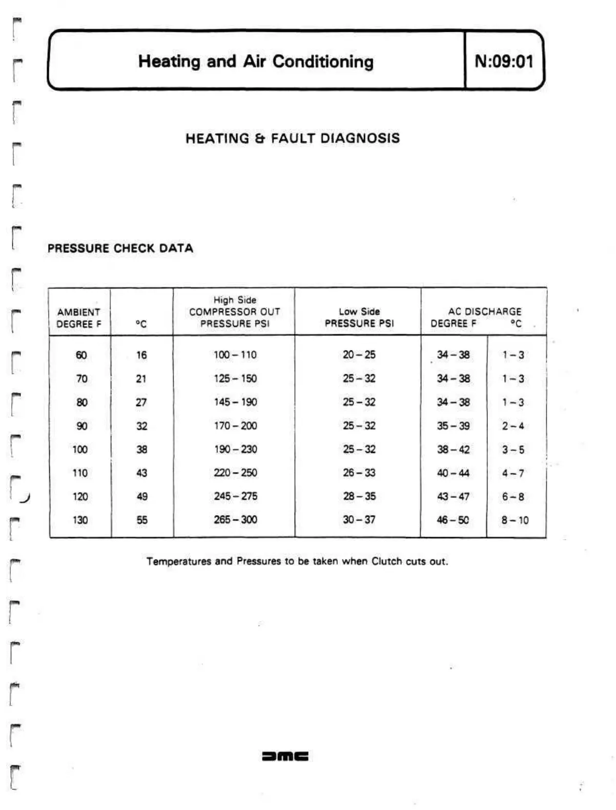 Temperatures and Pressures to be taken when Clutch cuts out.