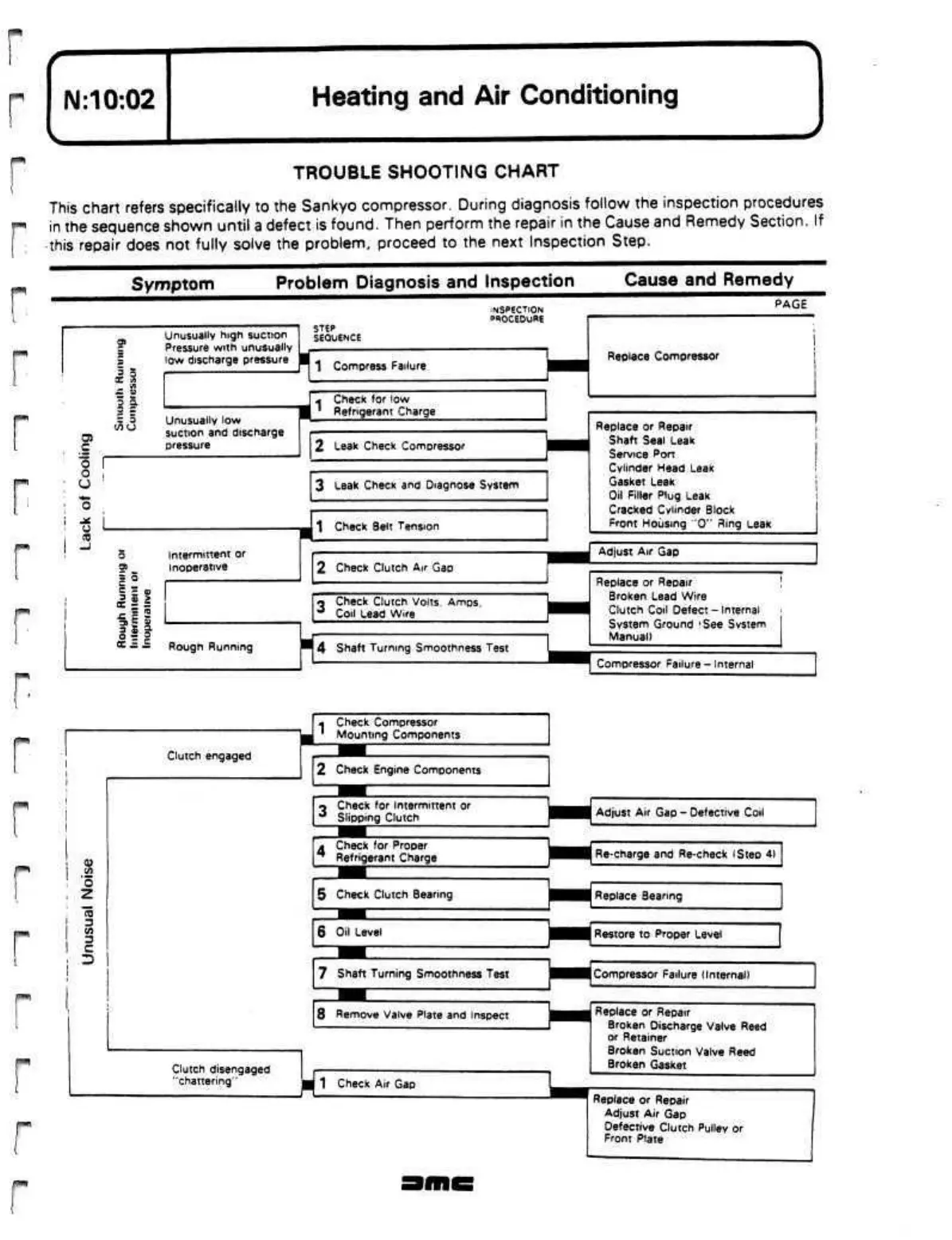 This chart refers specifically to the Sankyo compressor. During diagnosis follow the inspection procedures