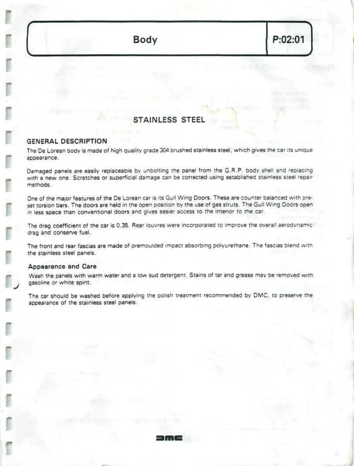 The car should be washed before applying the polish treatment recommended by DMC, to preserve the