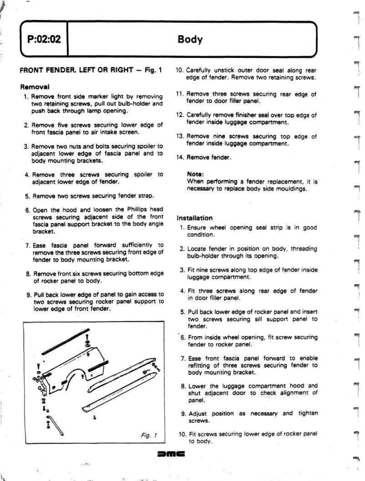 FRONT FENDER, LEFT OR RIGHT - Rg. 1