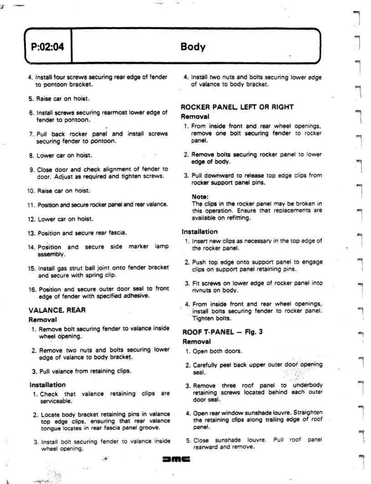 Position and secure rocker panel and rear valance.