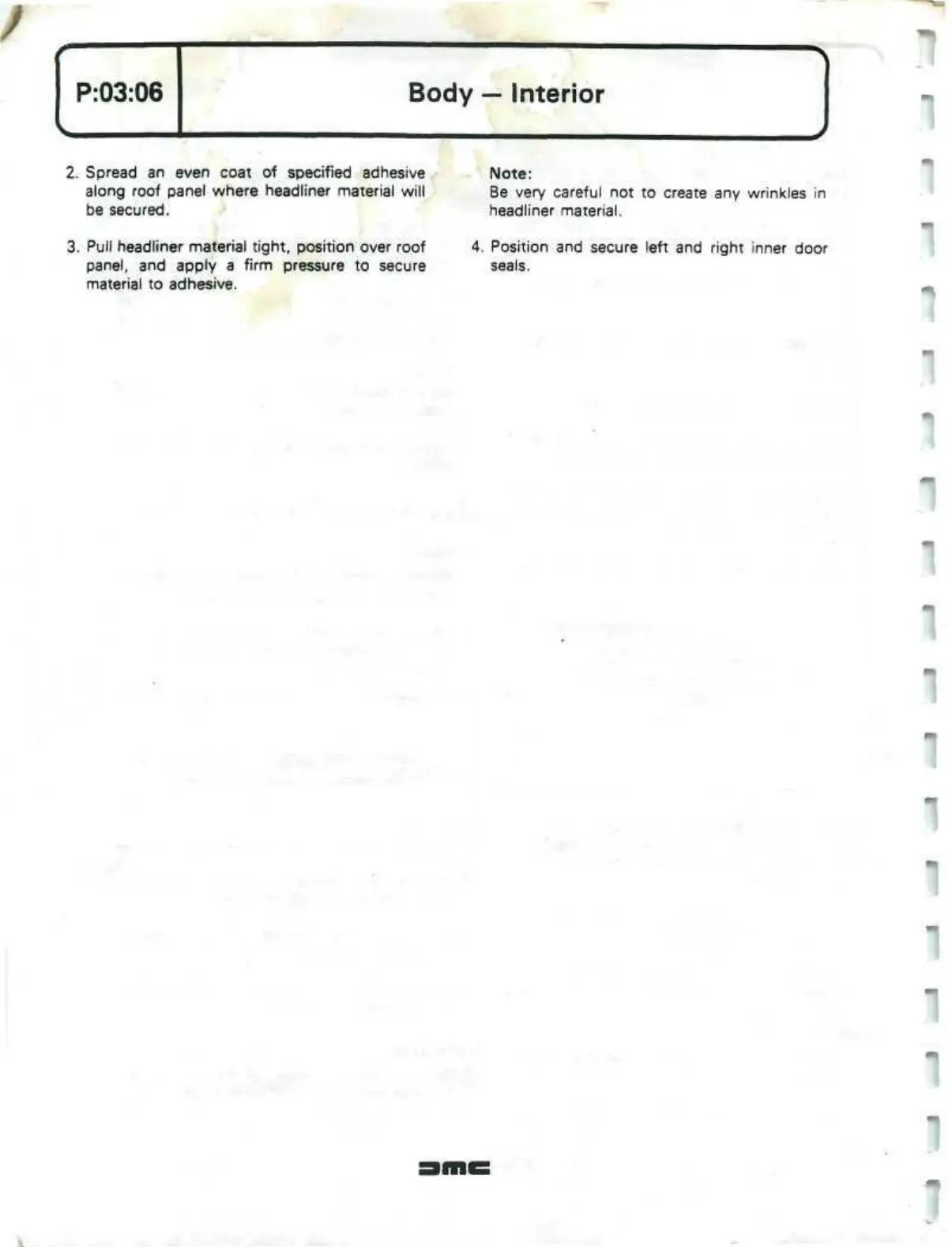 3. Pull headliner material tight, position over roof 4. Position and secure left and right inner door