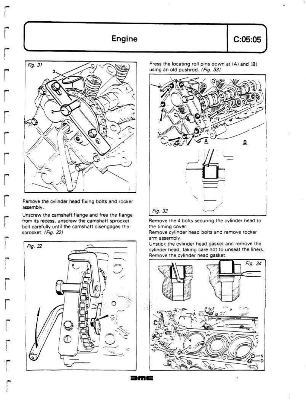 Remove the cylinder head fixing bolts and rocker