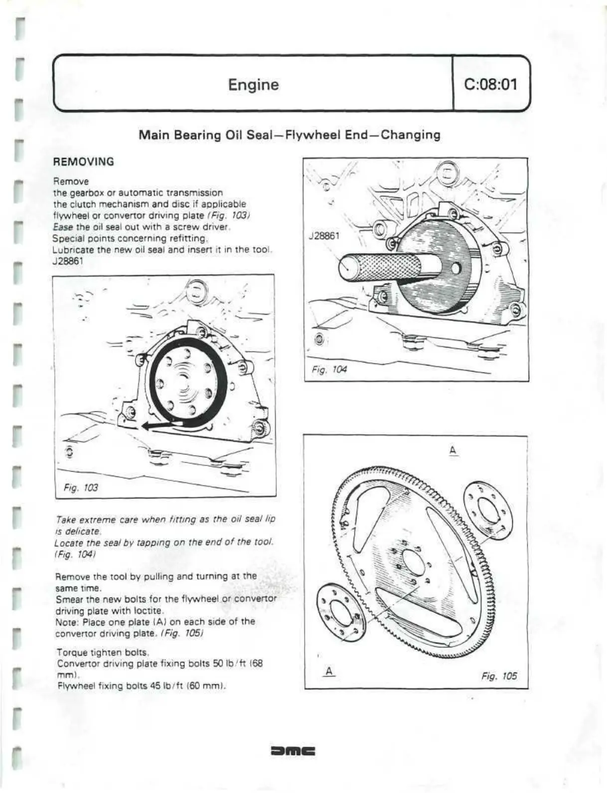 Flywheel fixing bolts 45 lb/ft (60 mm).