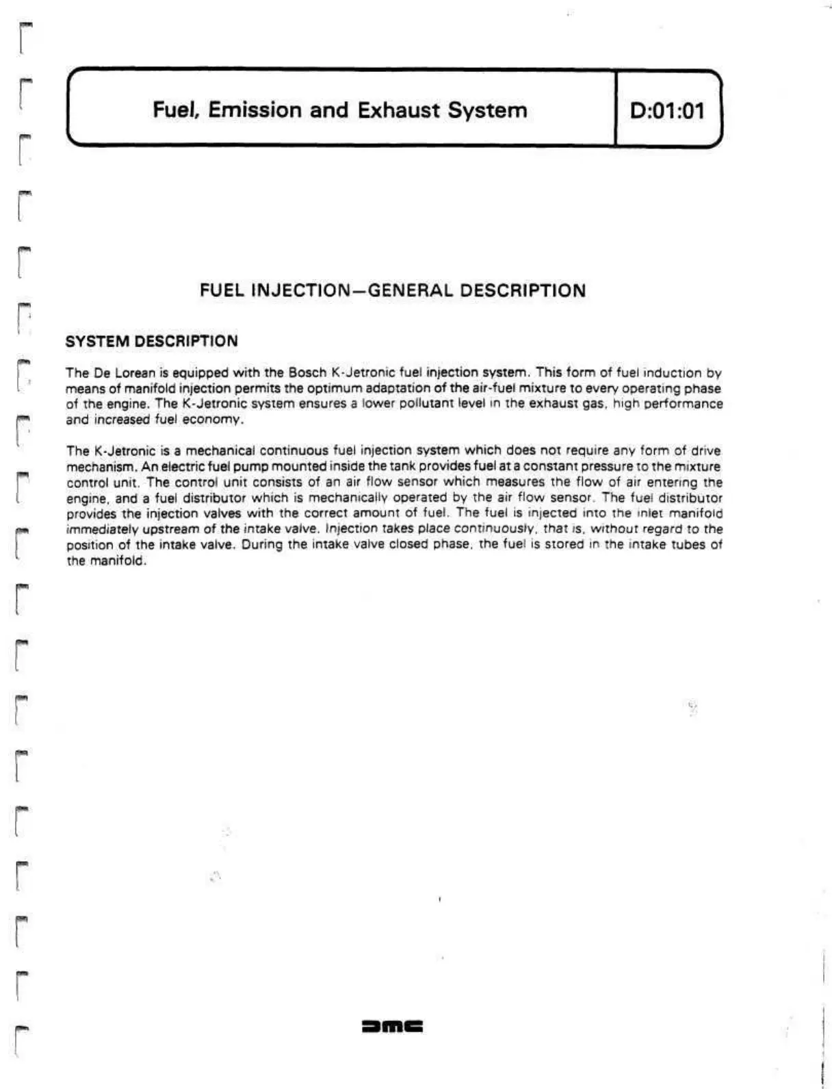 The De Lorean is equipped with the Bosch K-Jetronic fuel injection system. This form of fuel induction by