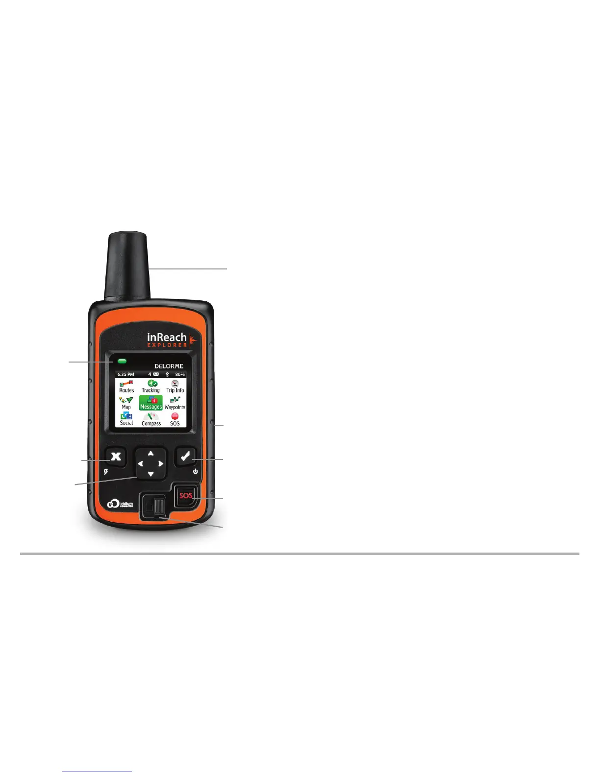 Antenna – When using inReach Explorer, point the antenna up toward the sky,