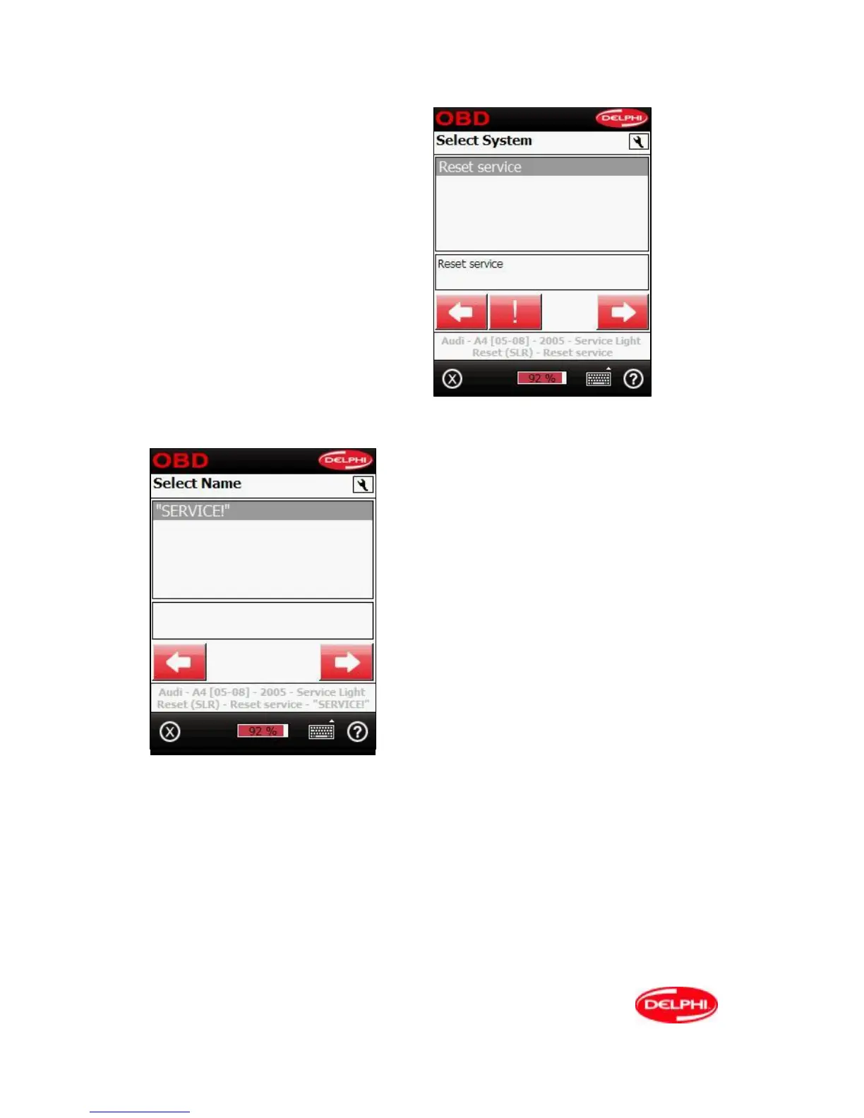 depending upon the vehicle selected. With manual service reset, a message appears, explaining how