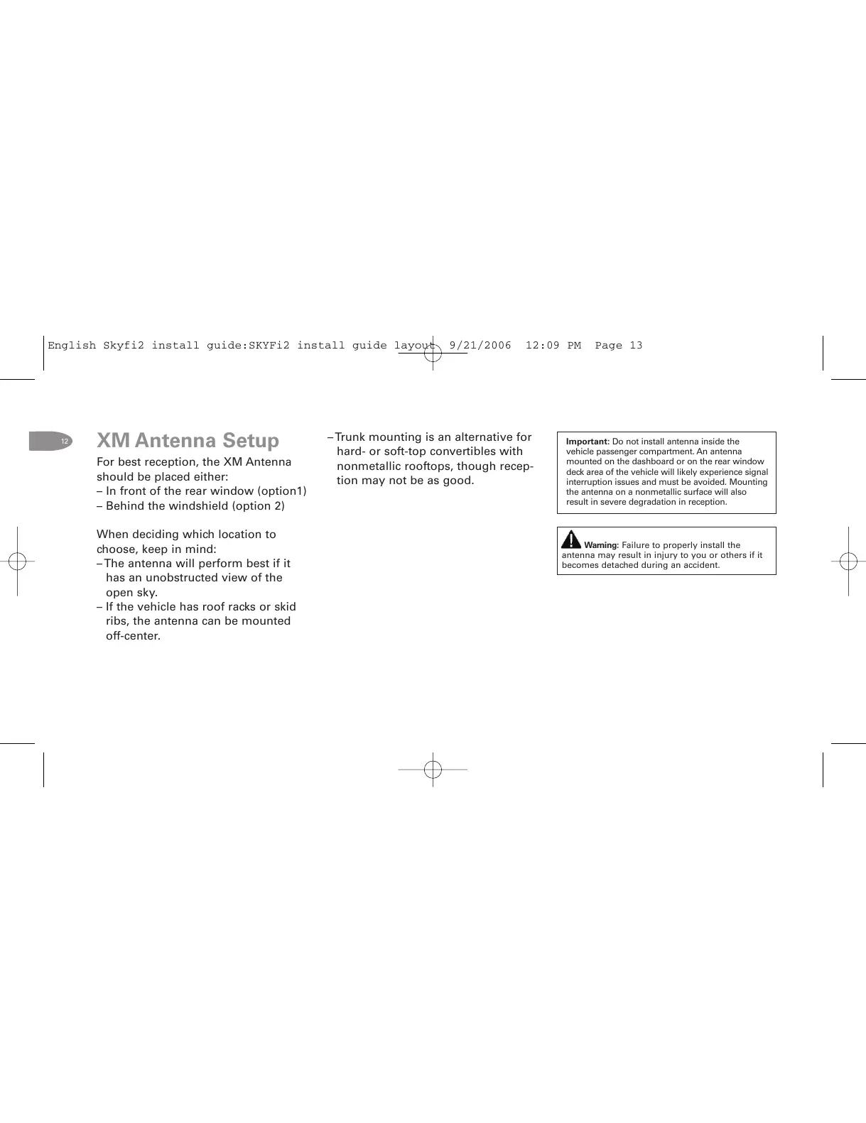 English Skyfi2 install guide:SKYFi2 install guide layout 9/21/2006 12:09 PM Page 13