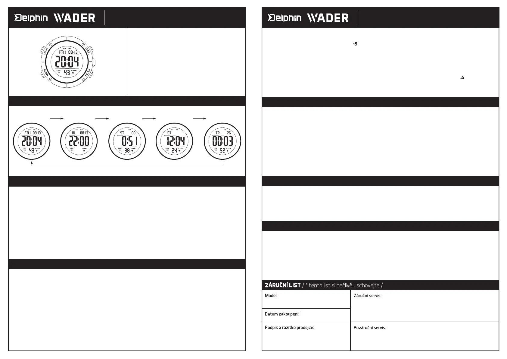 Skutečný čas Budík (AL) Stopky (ST) Duálni čas (DT) Časovač (TR)
