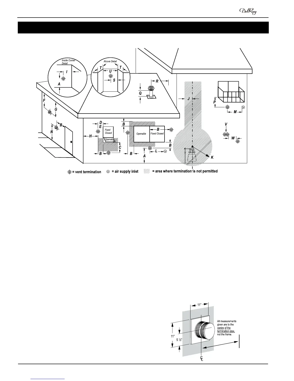E = clearance to permanently closed window [16 inches 41 cm recom-