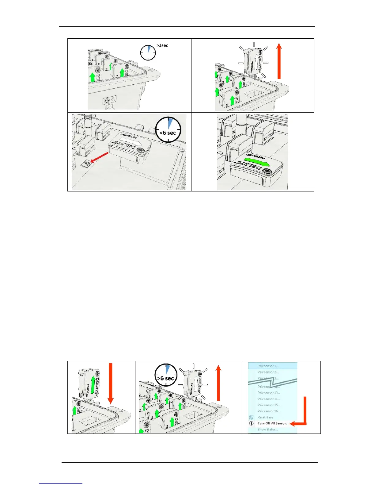 turn off the sensors. Unplugging the base station will turn off all docked sensors.
