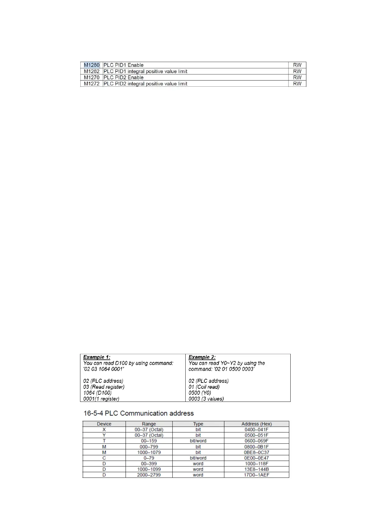 In order to enable these PID functions it is necessary to use the Special M contacts