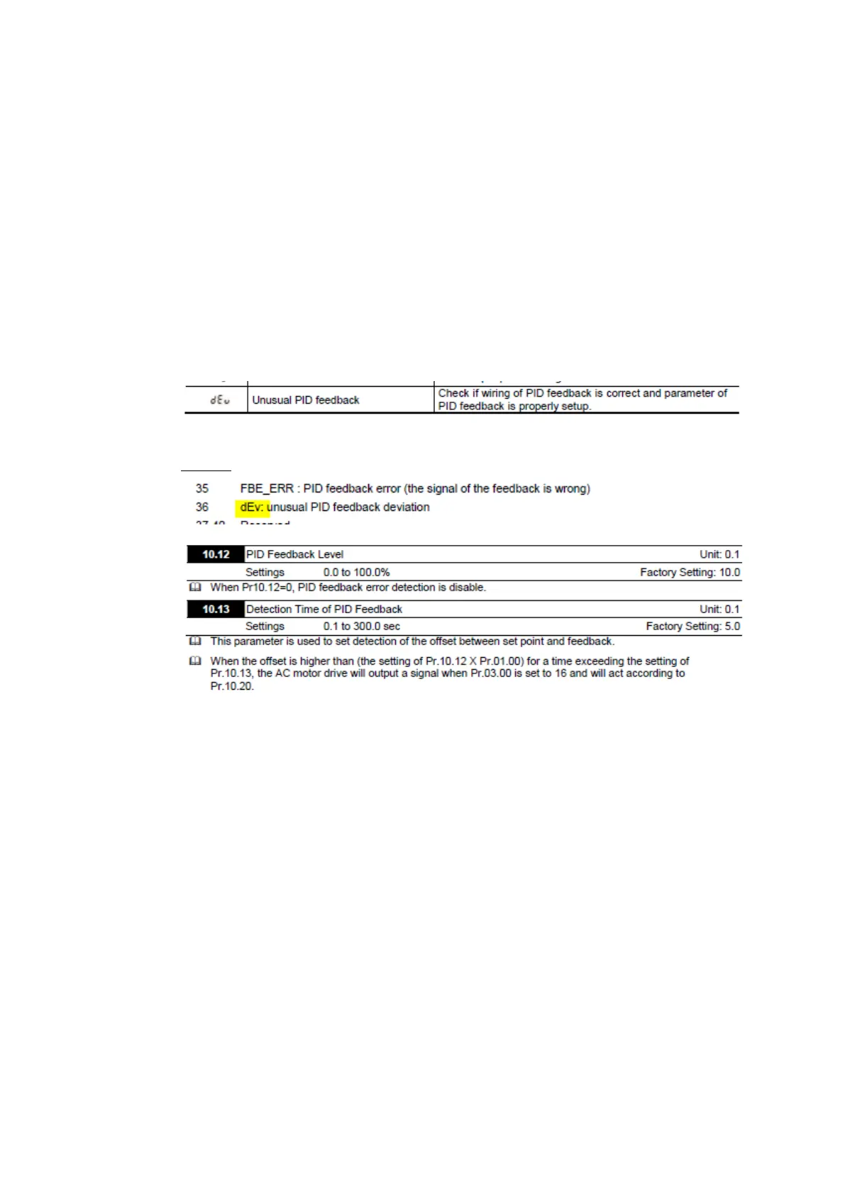 A DEV means the PID feedback deviates too much from the setpoint. The level and time