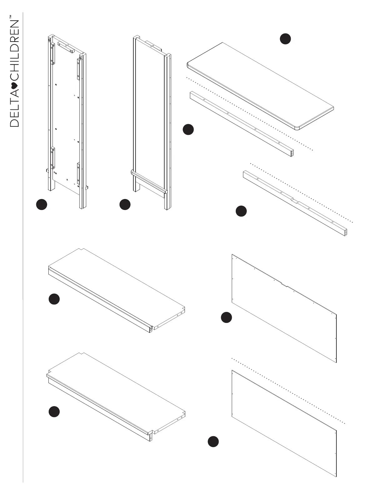Delta Children Bookcase - Bookcase Components; Main Parts Identification (A-J)