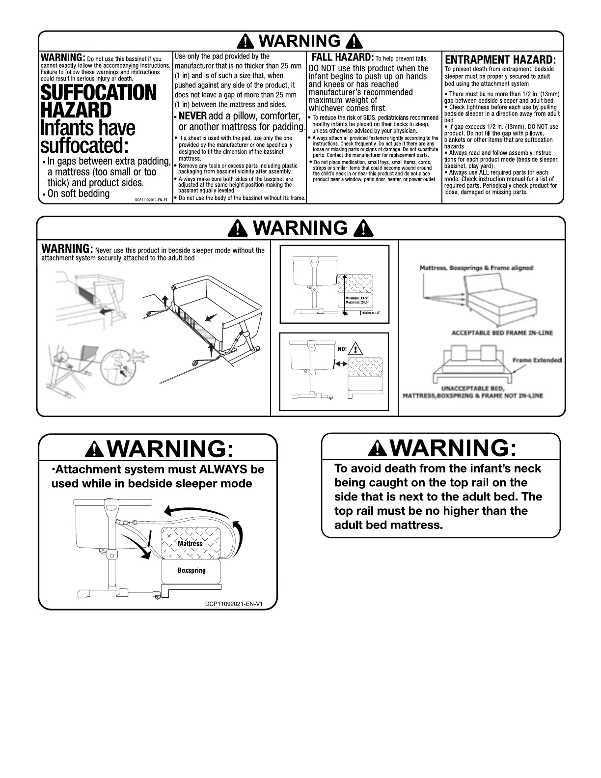Delta Children Close2Me - Critical Safety Precautions; Mattress, Padding, and Gap Safety; Entrapment Hazard and Bed Attachment