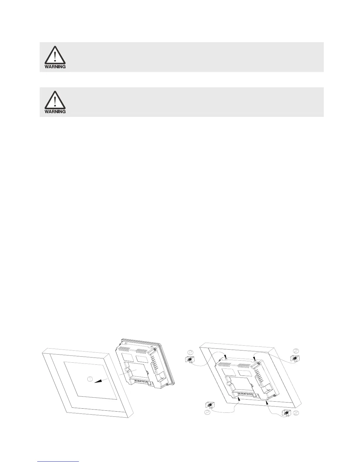 為了使冷卻循環效果良好,安裝人機介面時,其上下左右與相鄰的物品和擋板(牆)必須保持足夠