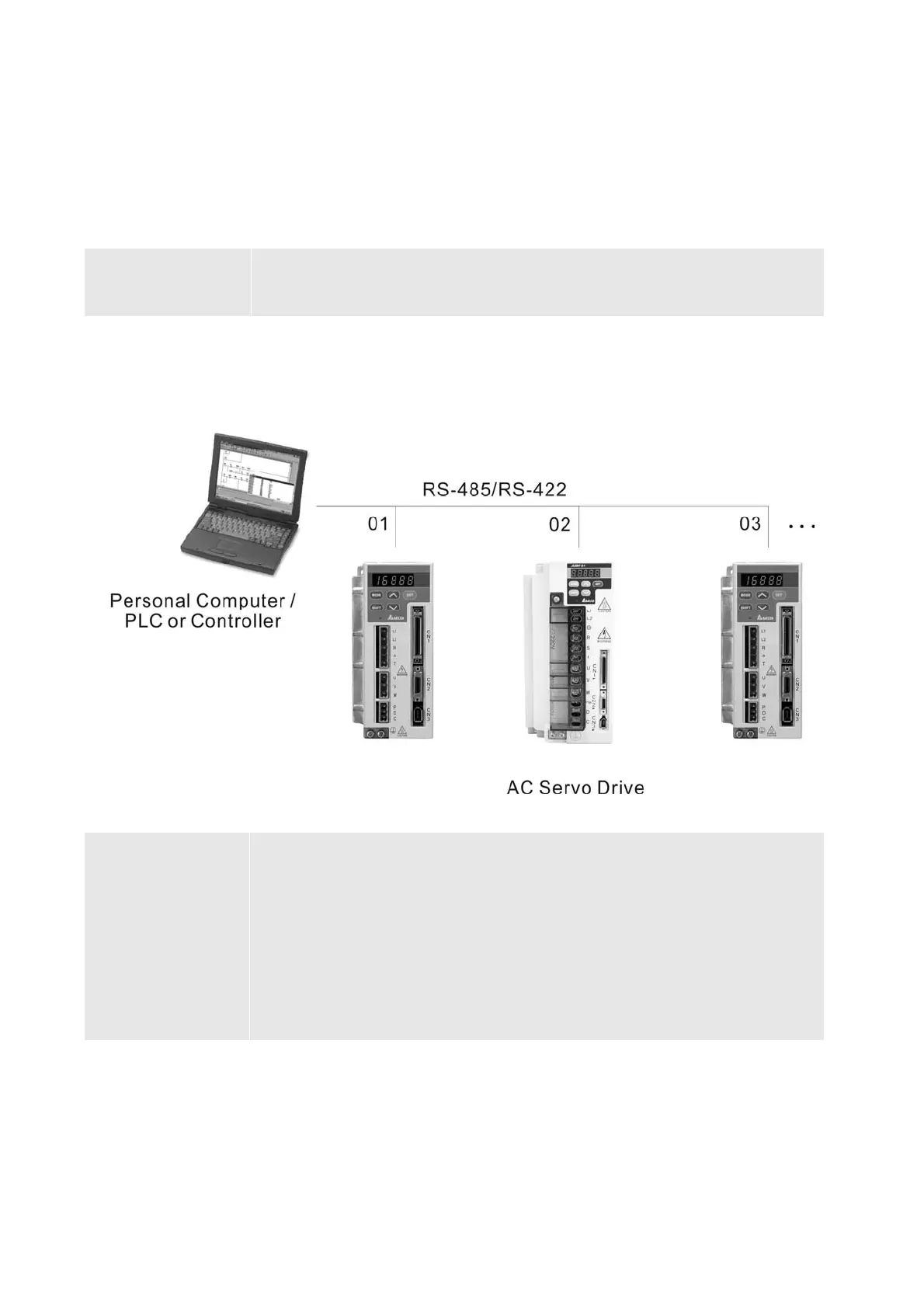 If the AC servo drive is controlled by RS-232/485/422 communication, each drive (or device) must be