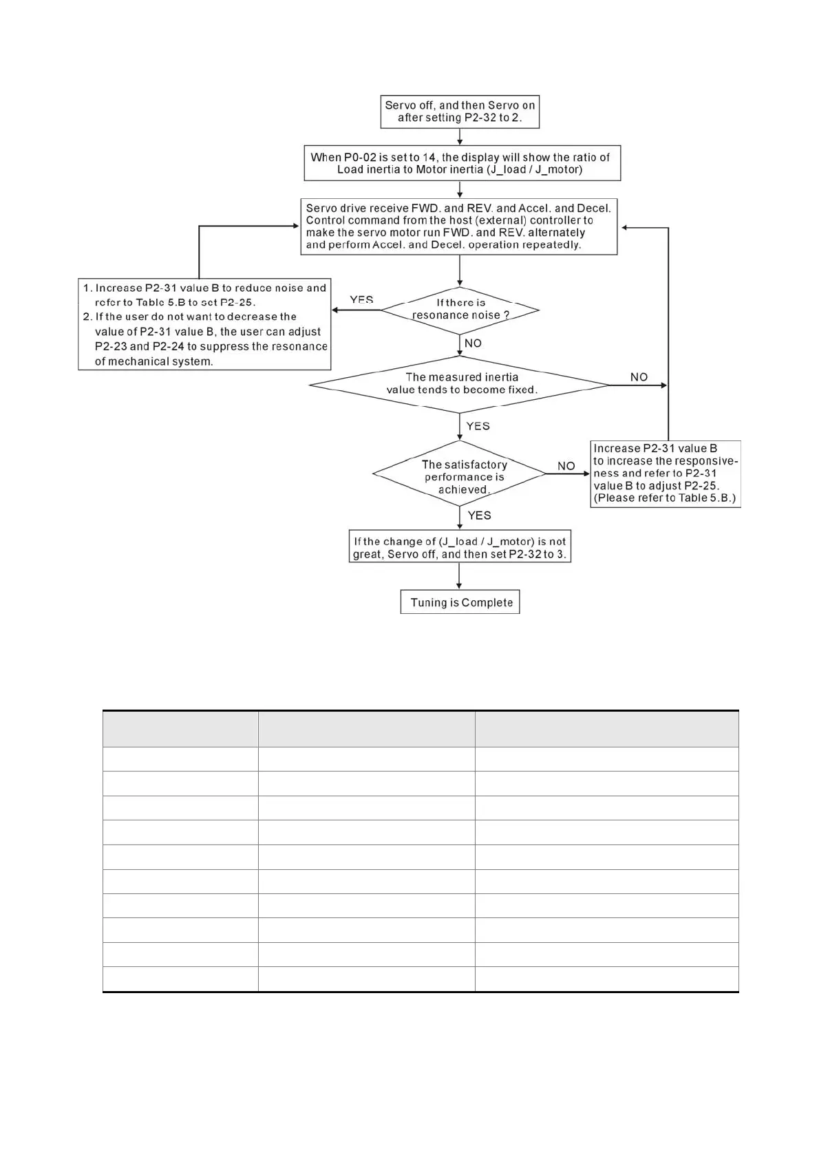 P2-31 value “B” Speed Loop Responsive Recommended Setting Value of P2-25