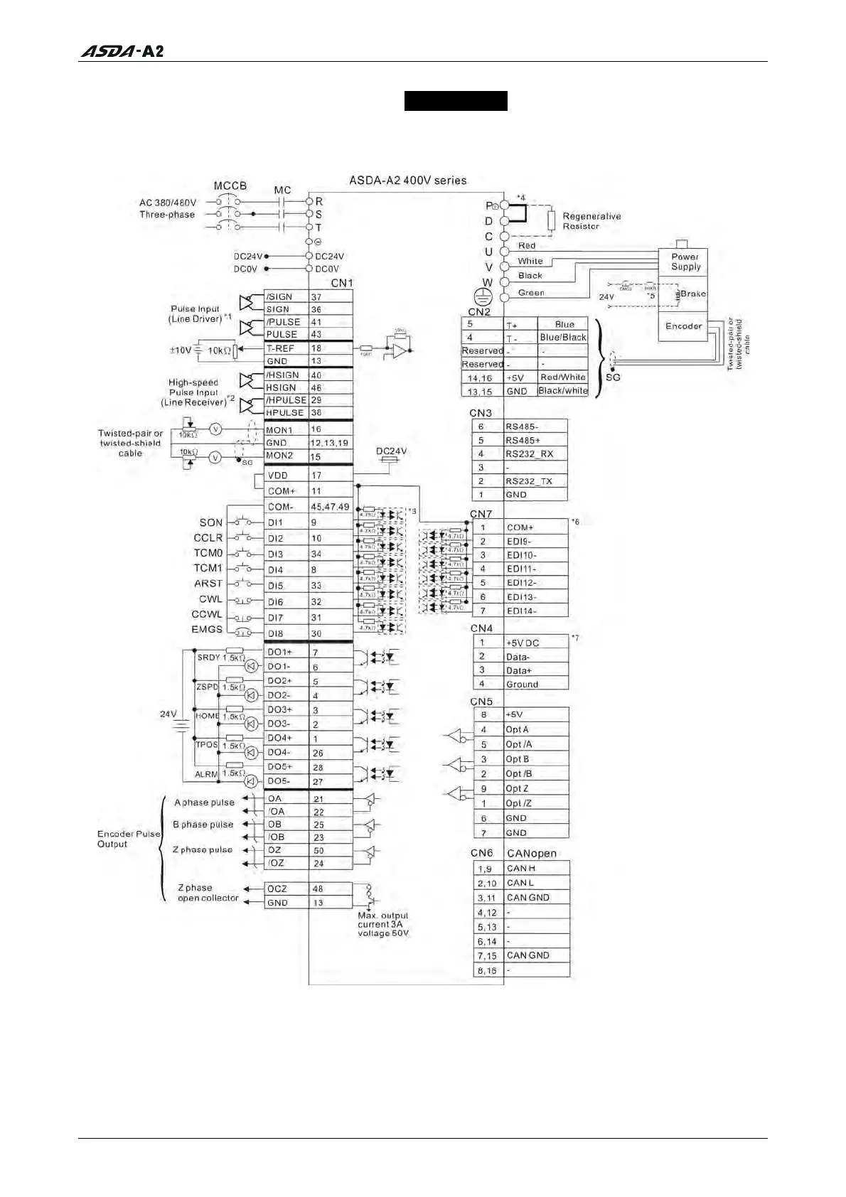 *6 For extension digital inputs (DI) connections (CN7 is a optional part, not Delta standard supplied part.).