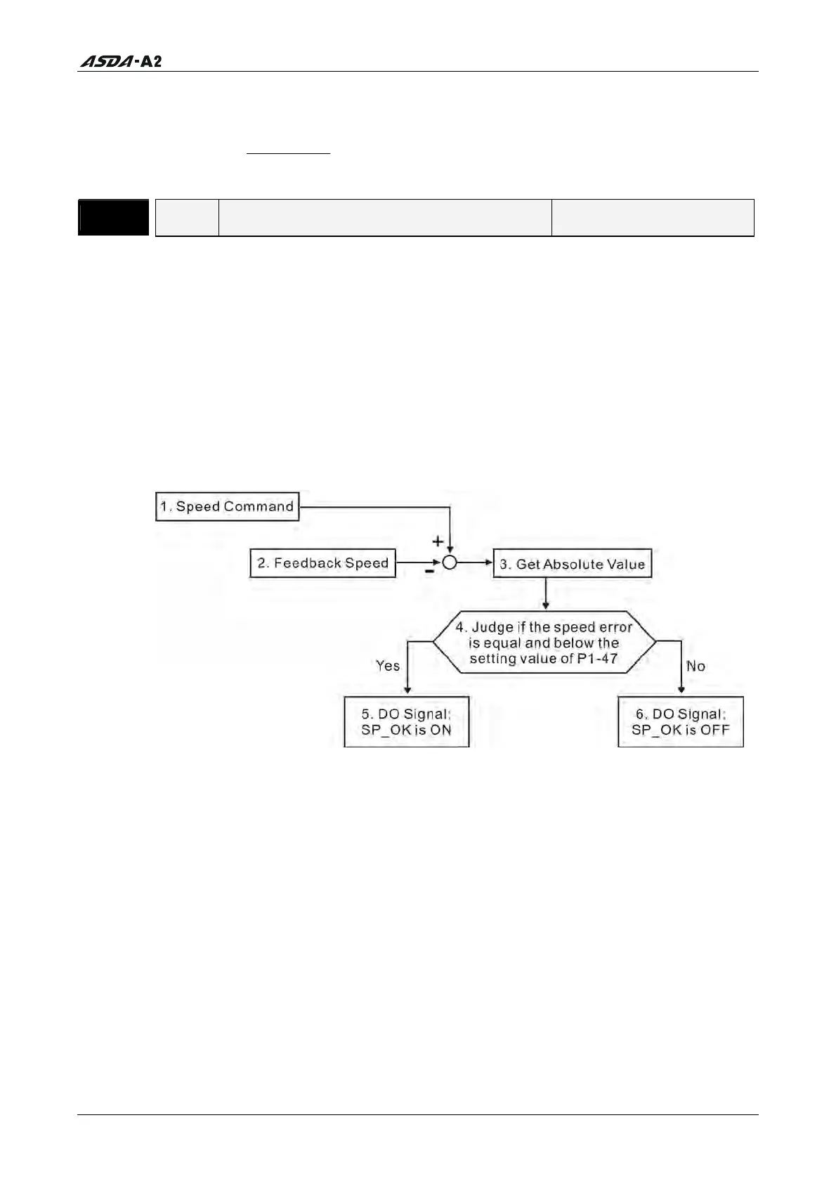 4. Judge if the speed error is equal and below the setting value of P1-47: When P1-47 is