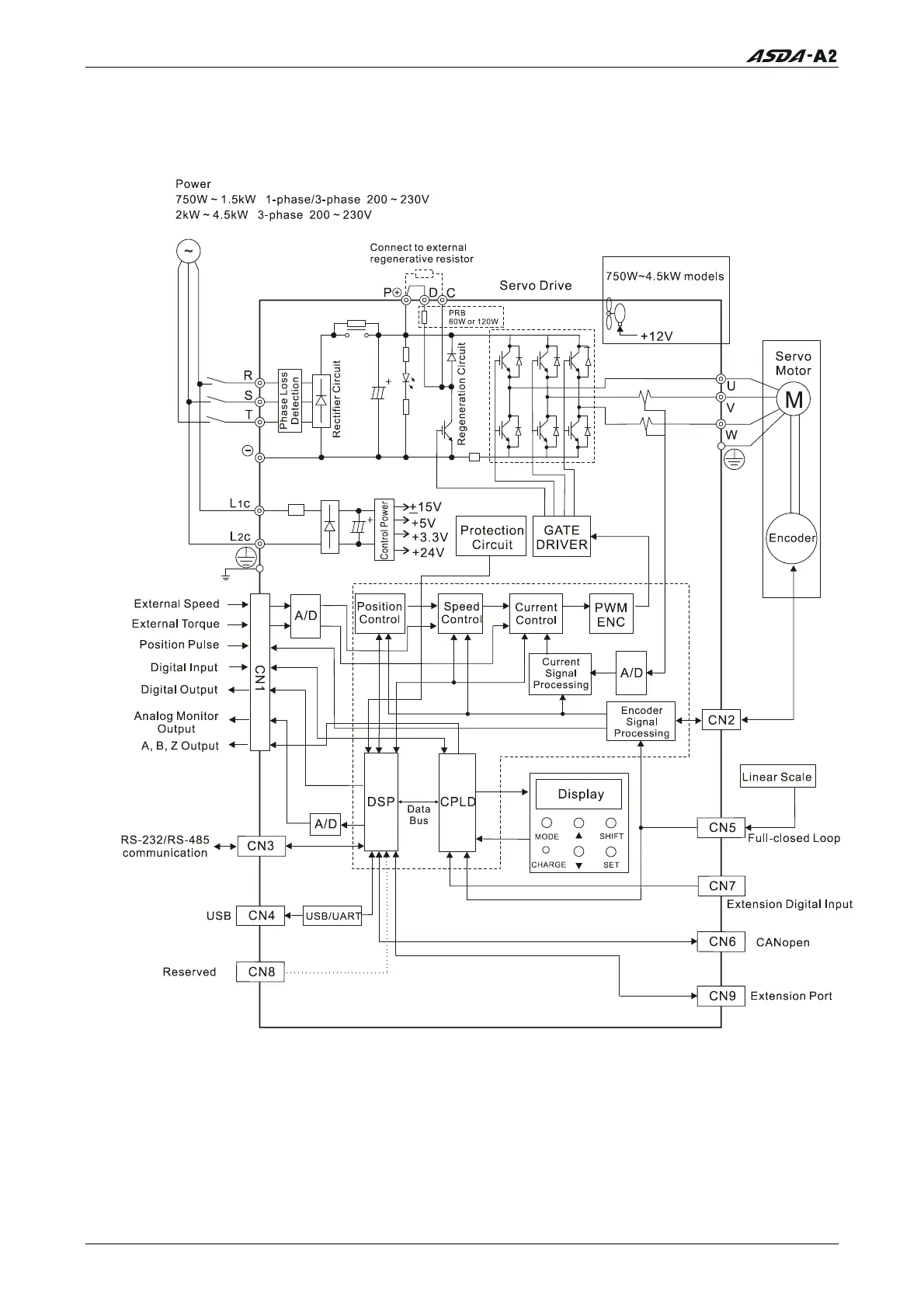 Figure 3.7 Basic Wiring Schematic of 750W to 4.5kW models