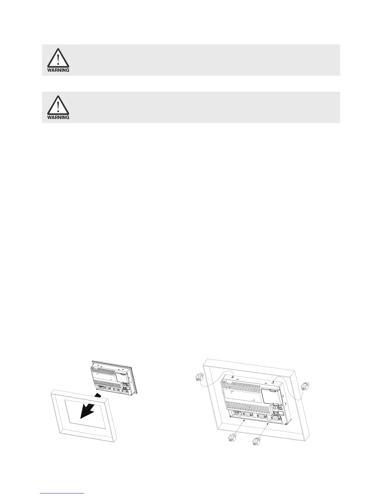 為了使冷卻循環效果良好,安裝人機介面時,其上下左右與相鄰的物品和擋板(牆)必須保持足夠